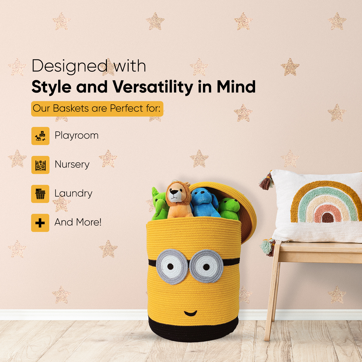 Unleash the potential of our Minion Face Laundry Basket, a versatile marvel that transcends the ordinary. Whether you’re organizing toys in the playroom or streamlining your office space, this cotton rope storage basket wonder adapts effortlessly to your storage needs.